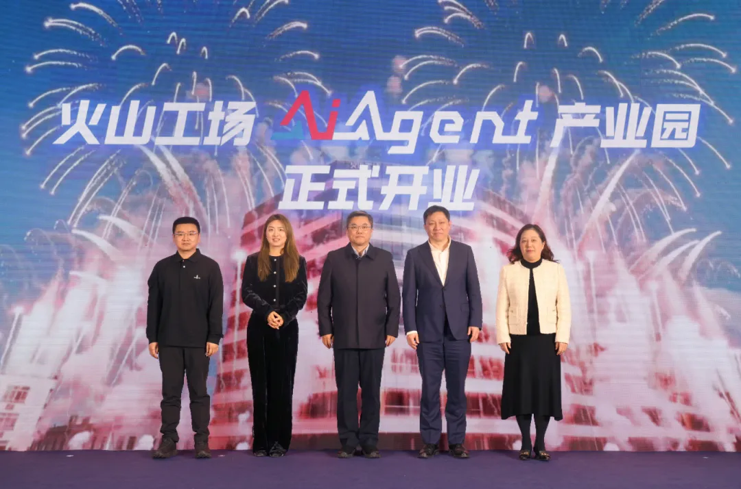 现场,薛侃、周海鹰、裘薇、赵文婕,以及抖音集团政务合作副总经理郑汉星共同上台揭幕,正式宣布火山工场AI Agent产业园开业,标志着园区迈入全面运营、赋能产业生态的崭新阶段。